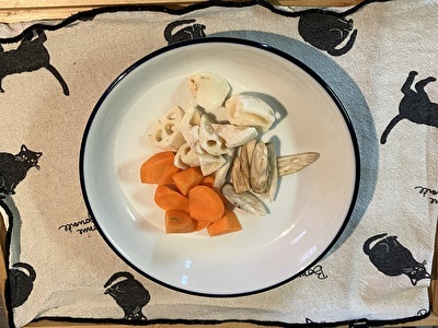 冷凍庫で眠っていたレンコンと一緒に煮てしまいます。